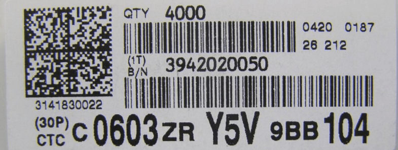 如上圖所示臺灣國巨貼片電容標(biāo)簽(YAGEO第3廠,簡稱Y3廠)