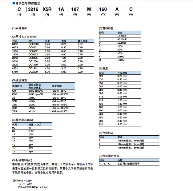 貼片電容的命名通常由幾個部分組成,包括廠商標識、系列號、尺寸代碼、容量值、容量單位、電壓值、誤差等級以及其他特性標識。這些部分通過特定的字母、數字或符號組合來表示。